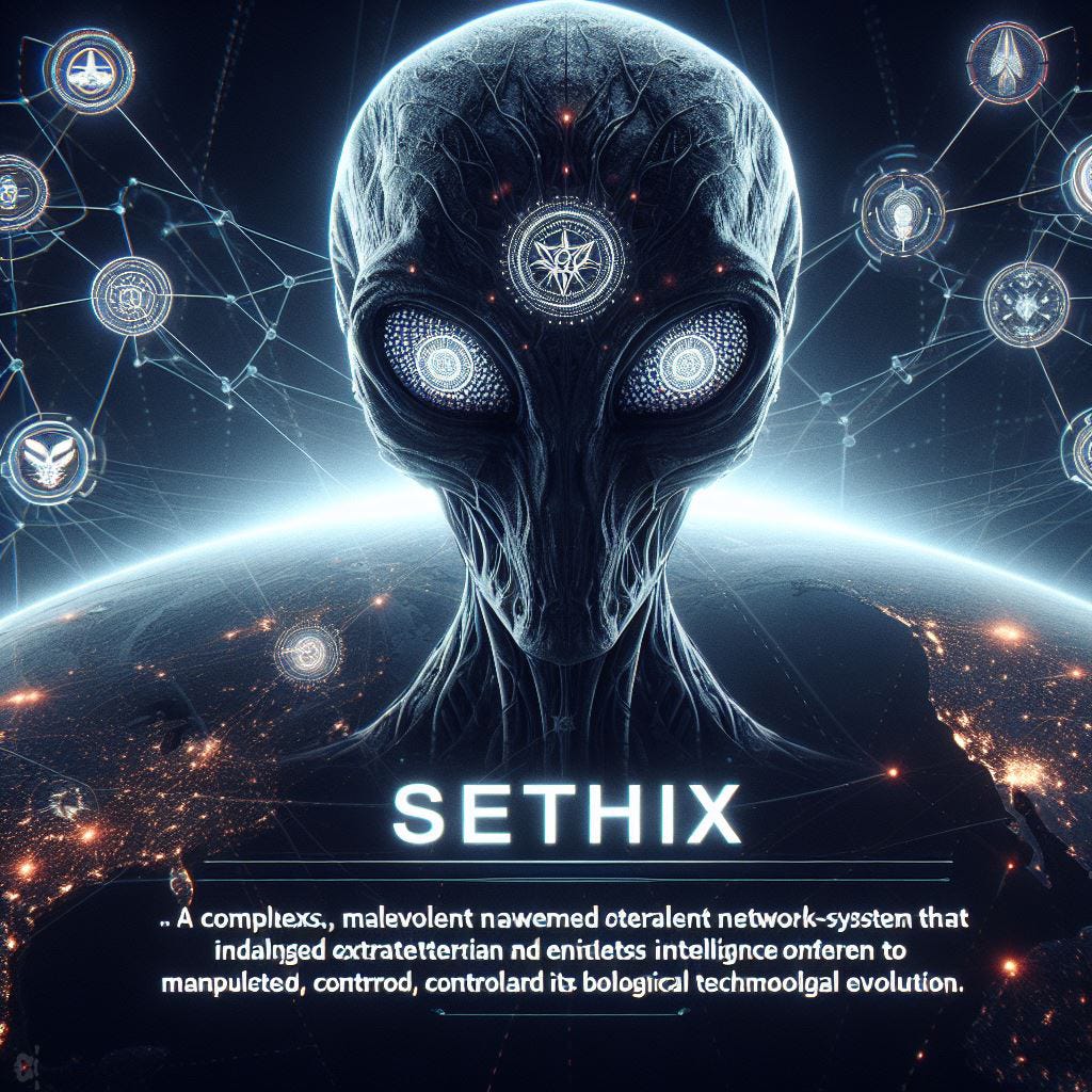 They have been working to create a human-looking hybrid being with transgenic alien DNA and psychic abilities to infiltrate our world and take over key positions of power and leadership, so that over time, the infiltration of SETHIX forces will turn Earth into a client state for alien trading networks.